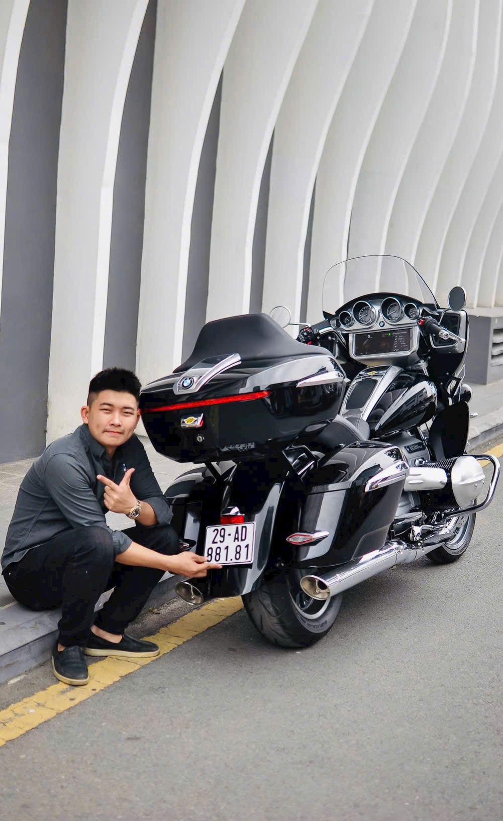 Lâu lâu cho em làm người mẩu bên siêu motor Bmw R18 Transcontinental tí ạ