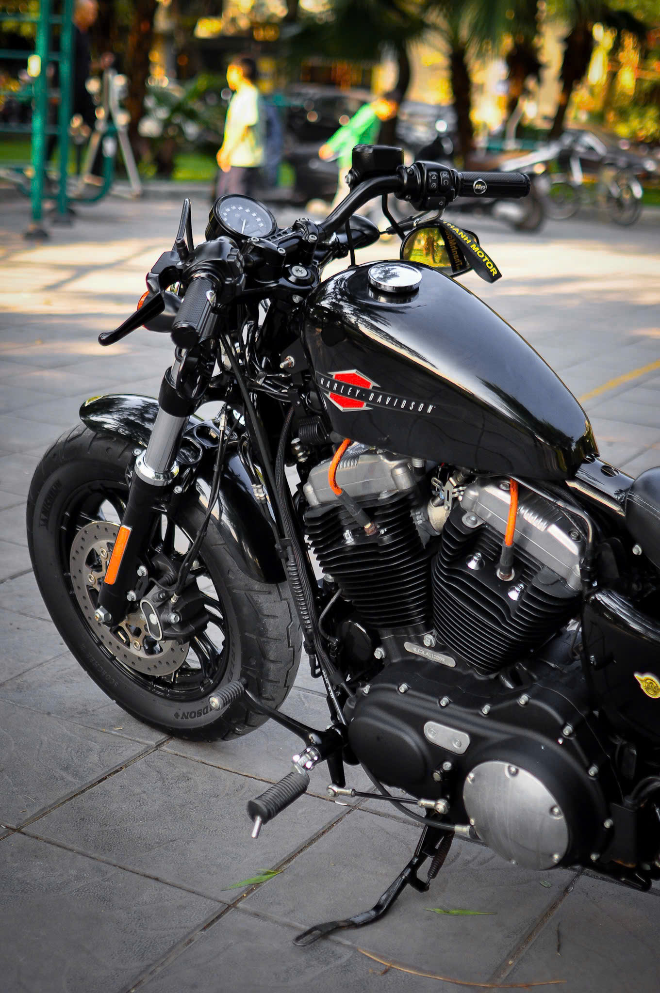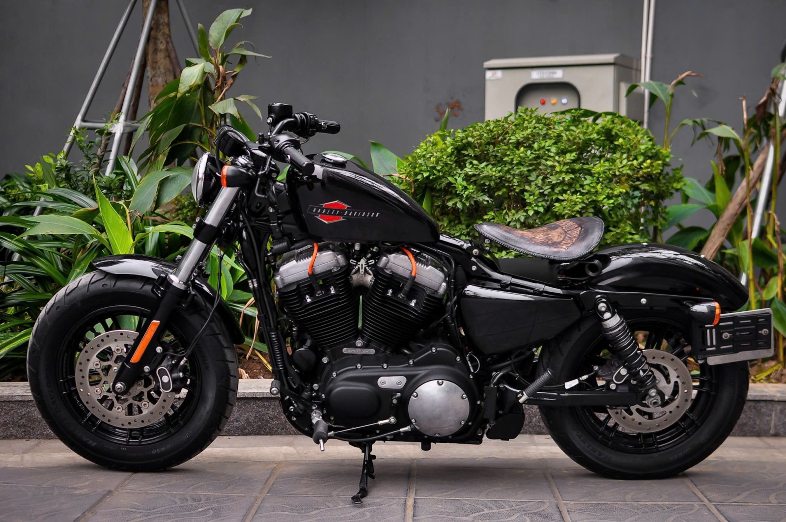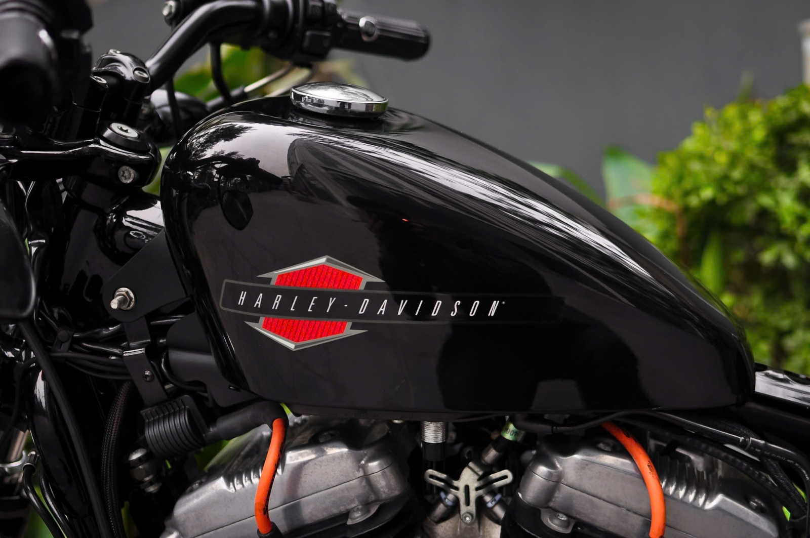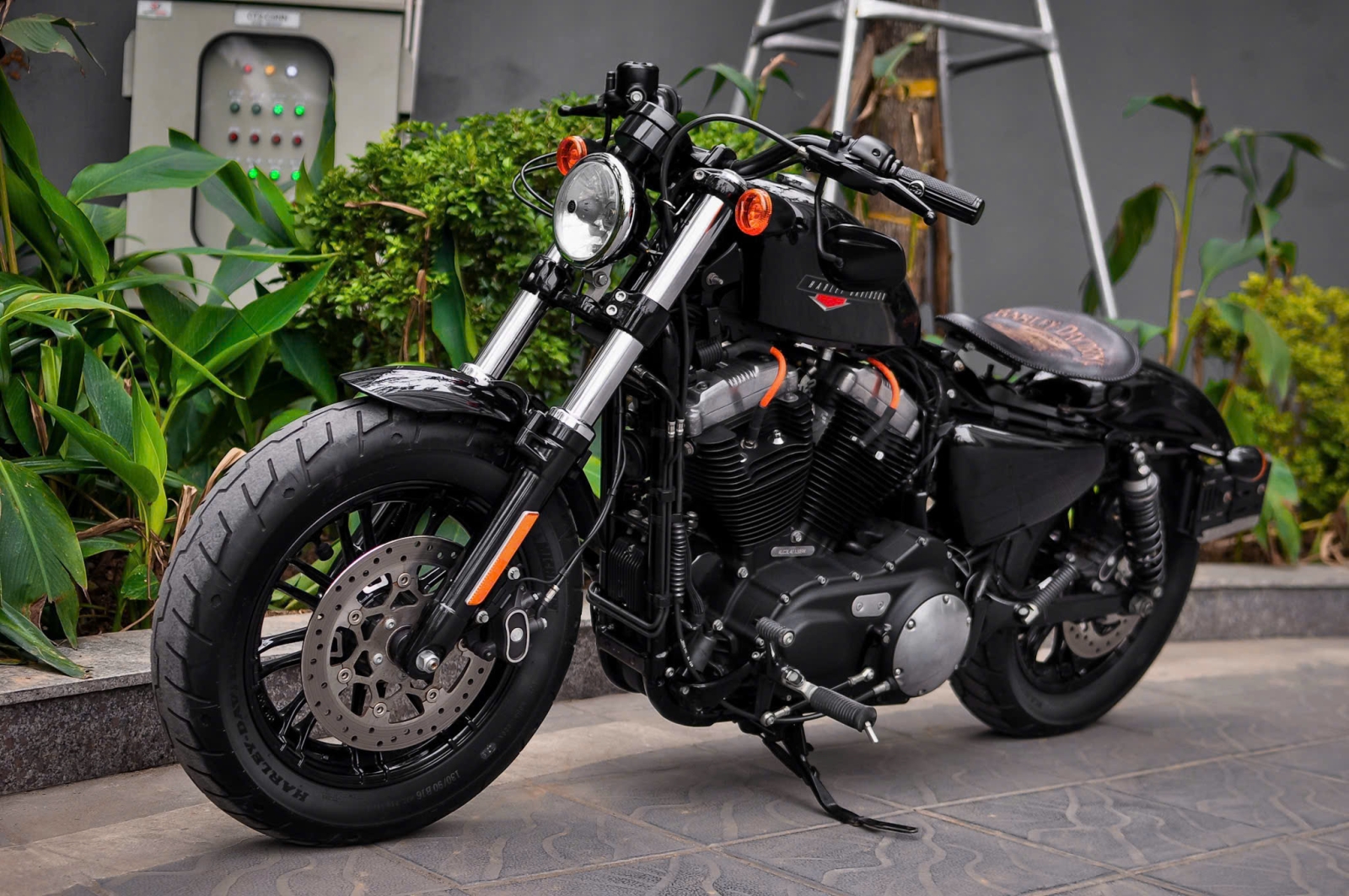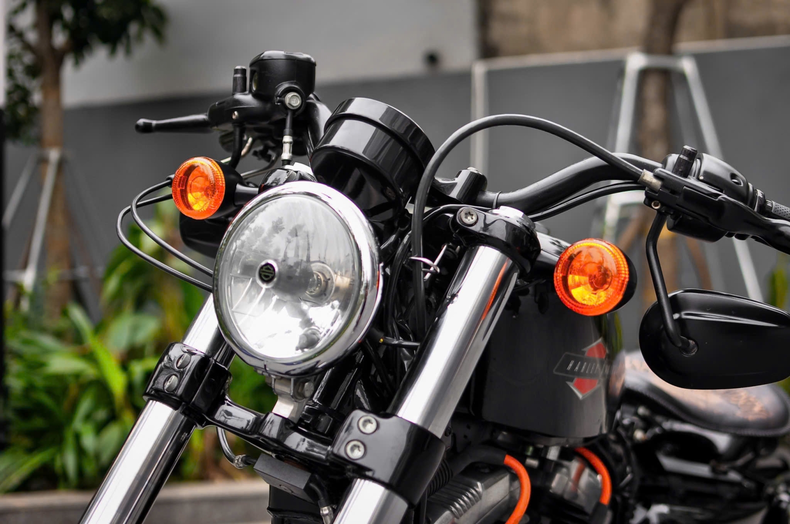 Chiếc Harley Davidson Forty Eight nổi bật với thiết kế bình xăng hình lê trứ danh cùng logo Harley-Davidson đặc trưng. Yên xe thấp giúp người lái dễ dàng kiểm soát xe trong mọi tình huống. Hệ thống treo trước với phuộc đơn giảm xóc nhún và hành trình ngắn, tạo cảm giác lái chắc chắn và linh hoạt.