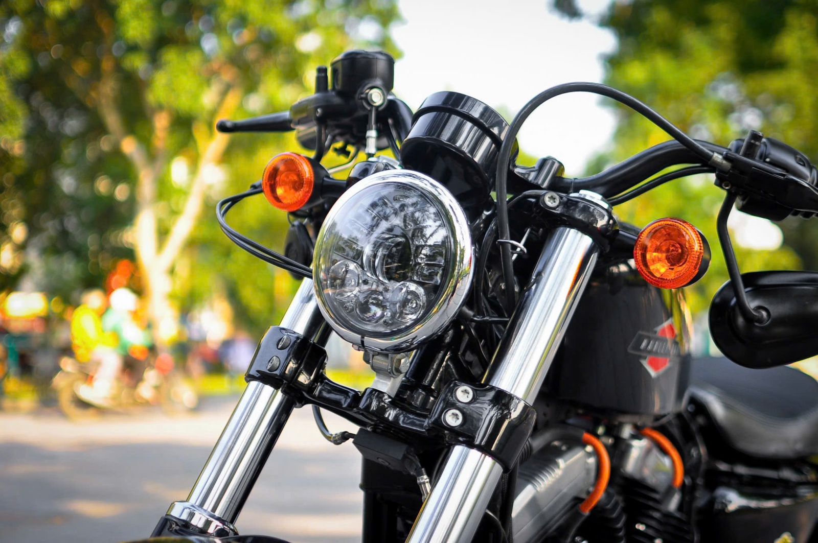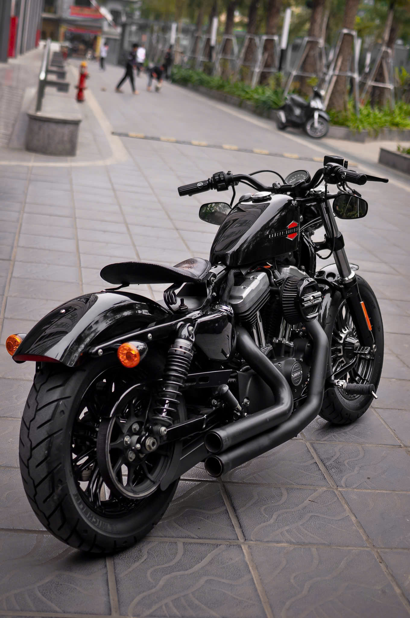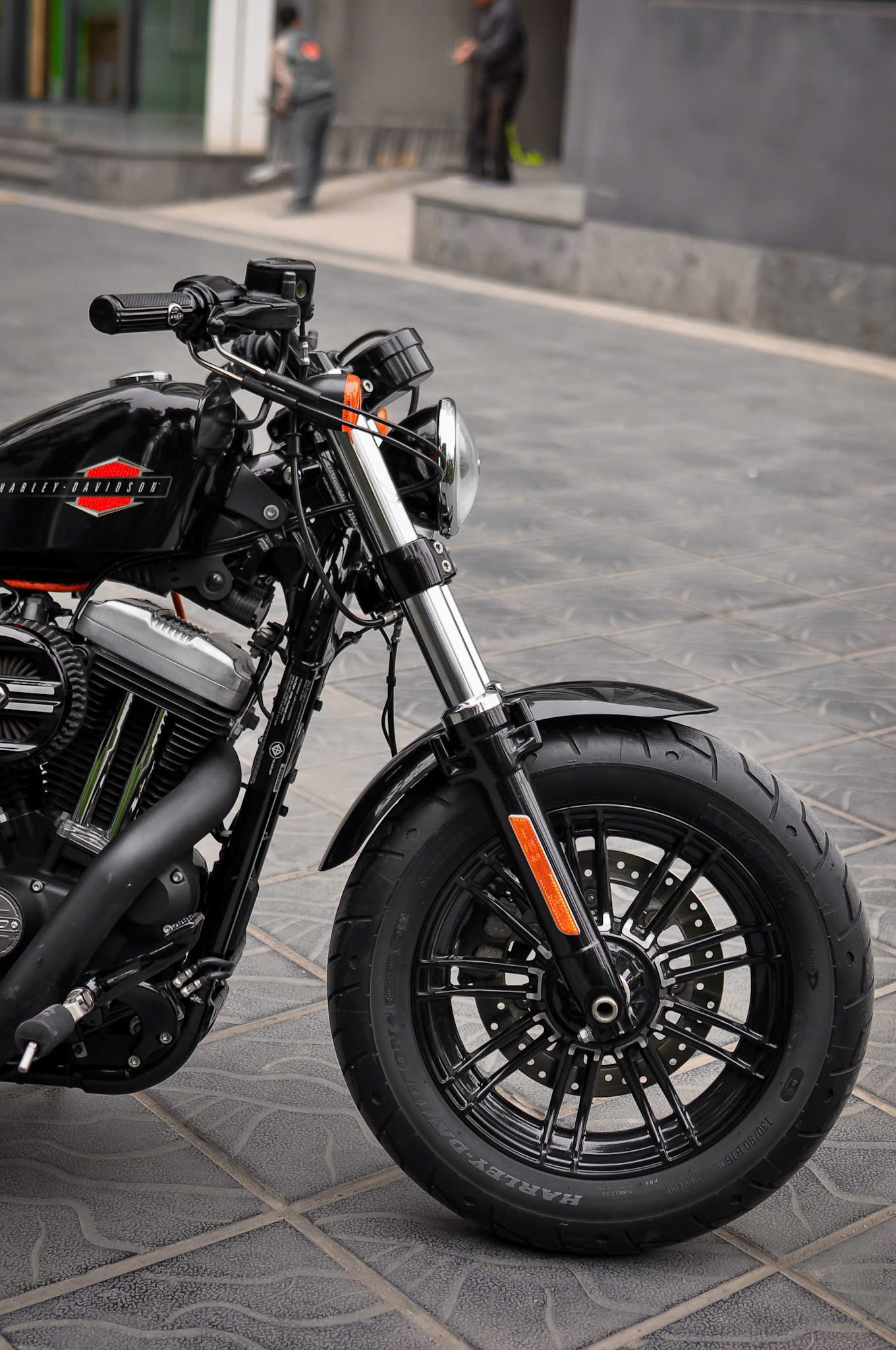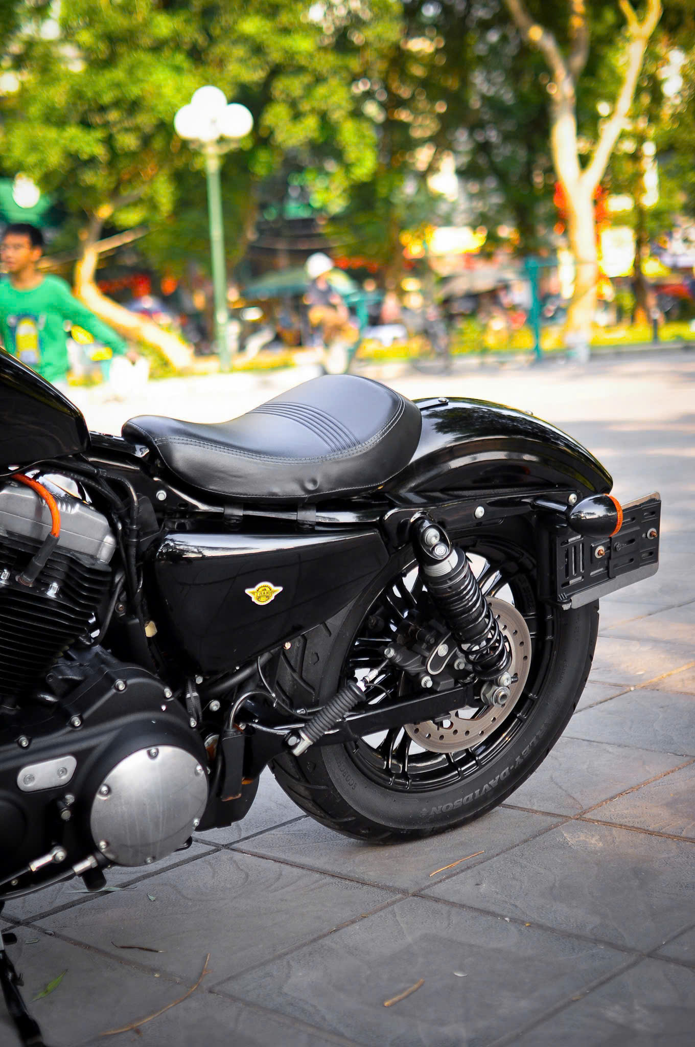 Chiếc Harley Davidson Forty Eight nổi bật với thiết kế bình xăng hình lê trứ danh cùng logo Harley-Davidson đặc trưng. Yên xe thấp giúp người lái dễ dàng kiểm soát xe trong mọi tình huống. Hệ thống treo trước với phuộc đơn giảm xóc nhún và hành trình ngắn, tạo cảm giác lái chắc chắn và linh hoạt.