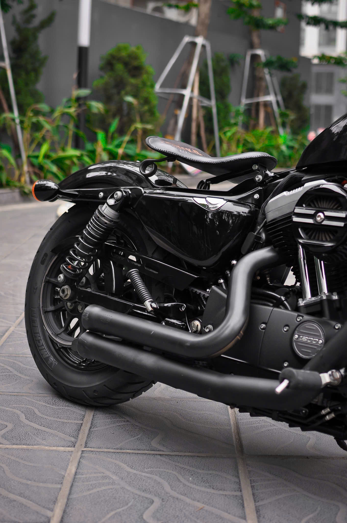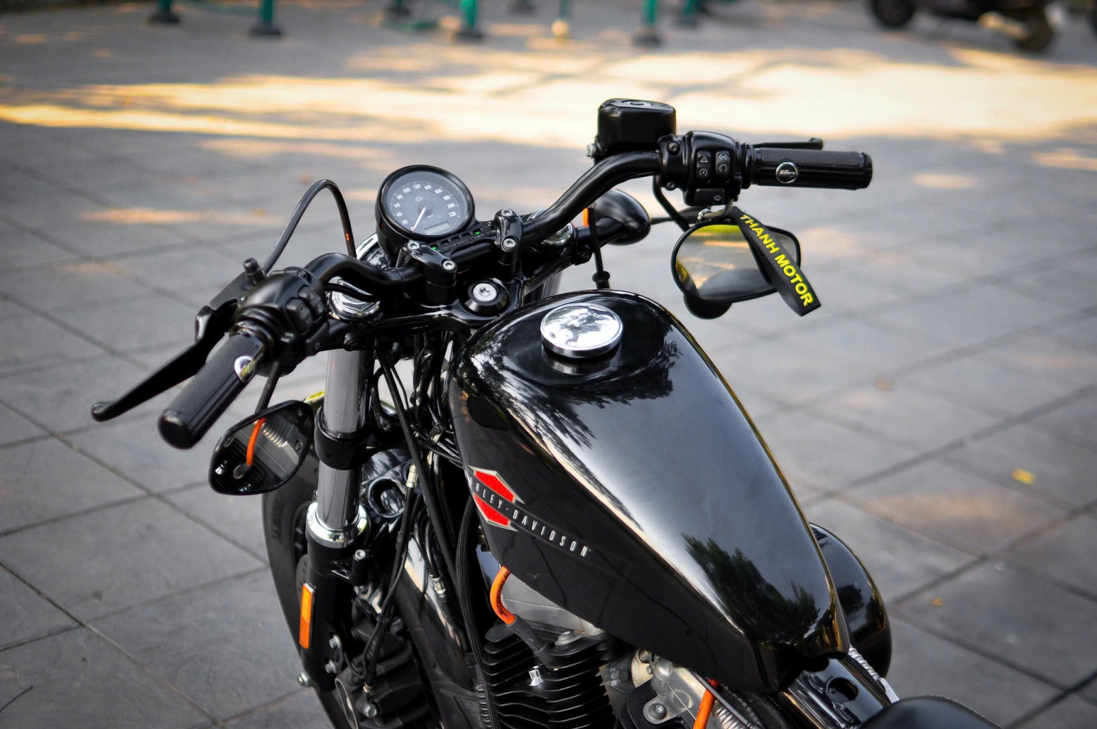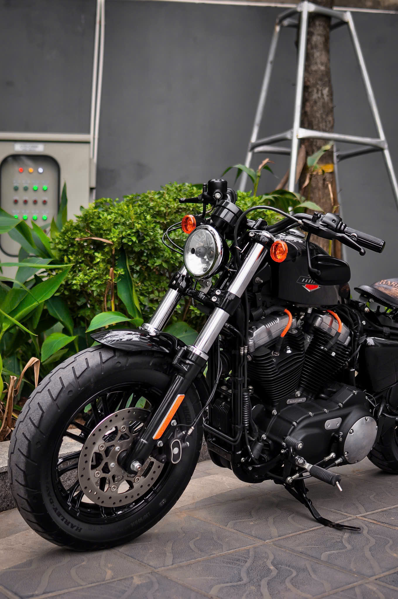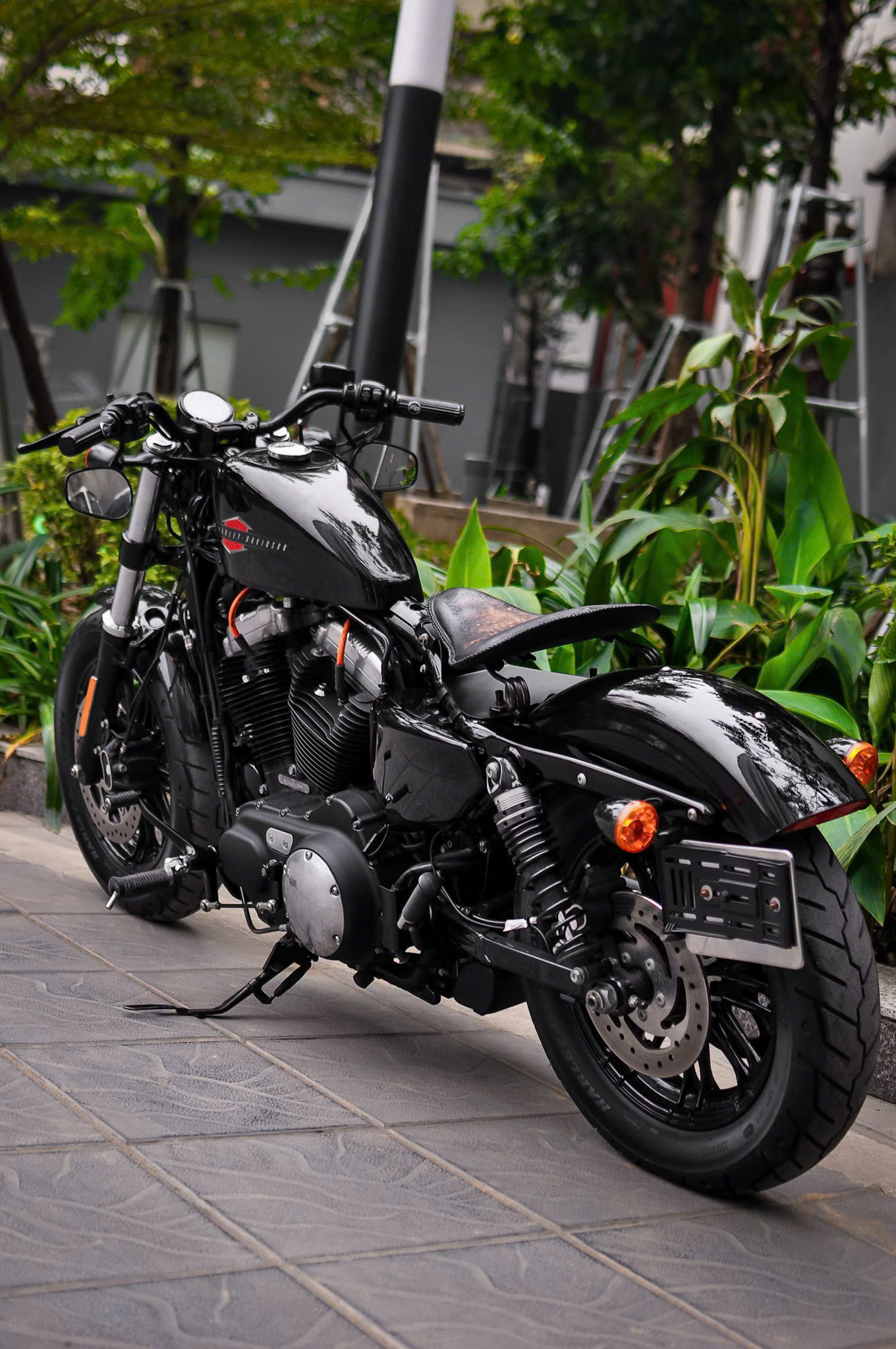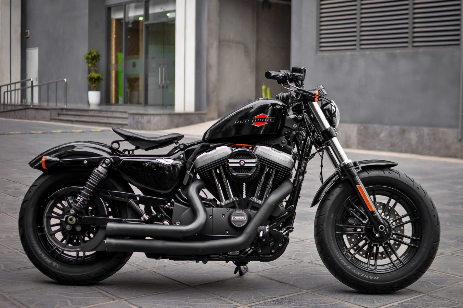 Chiếc Harley Davidson Forty Eight nổi bật với thiết kế bình xăng hình lê trứ danh cùng logo Harley-Davidson đặc trưng. Yên xe thấp giúp người lái dễ dàng kiểm soát xe trong mọi tình huống. Hệ thống treo trước với phuộc đơn giảm xóc nhún và hành trình ngắn, tạo cảm giác lái chắc chắn và linh hoạt.
