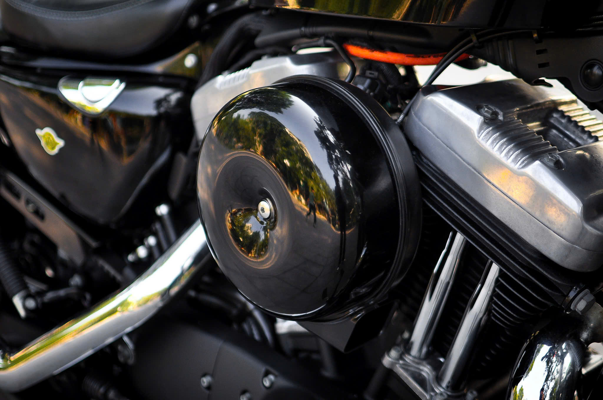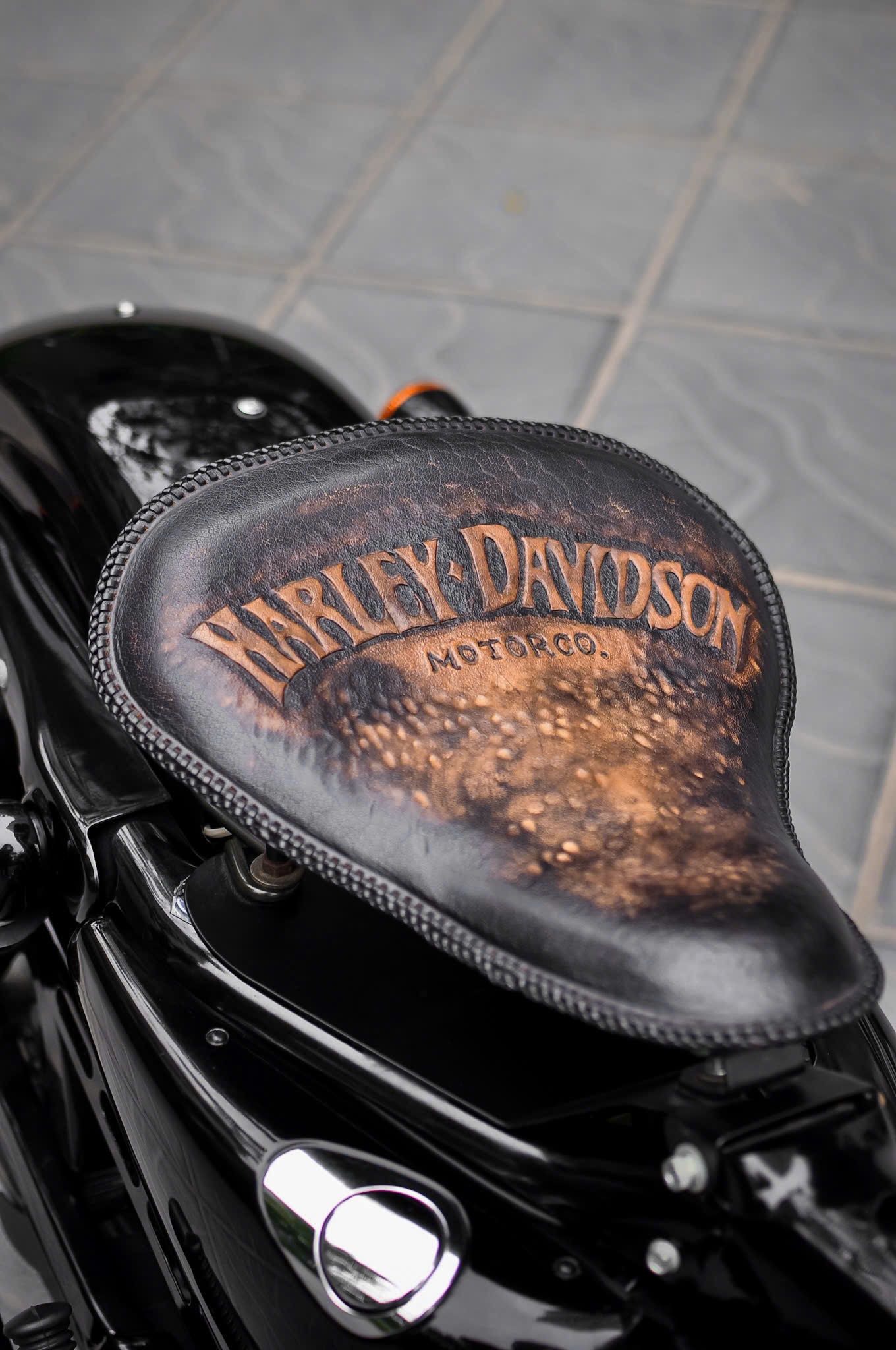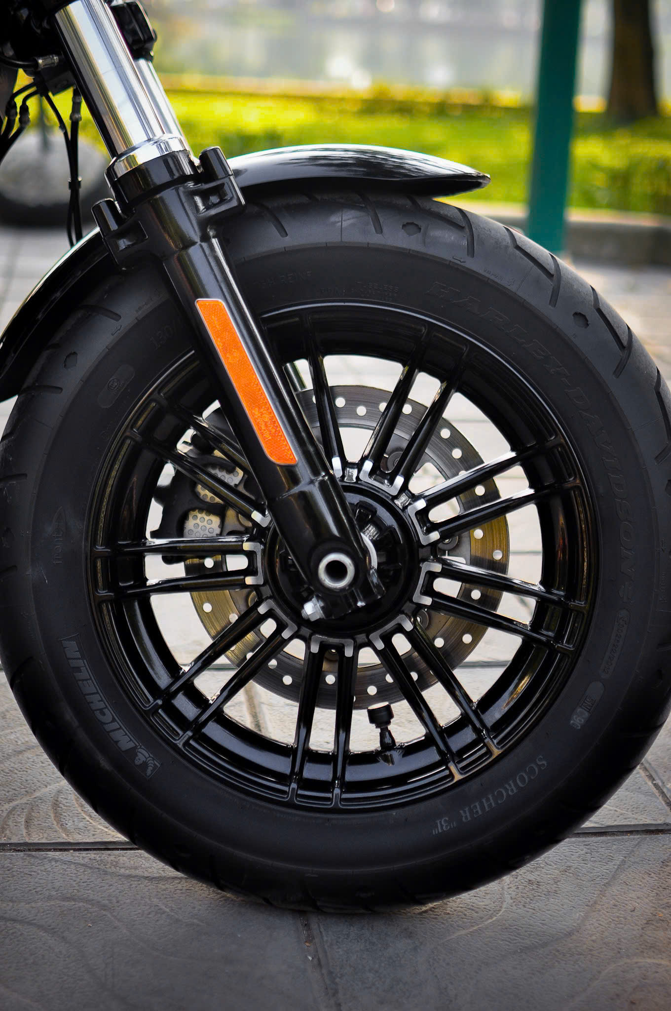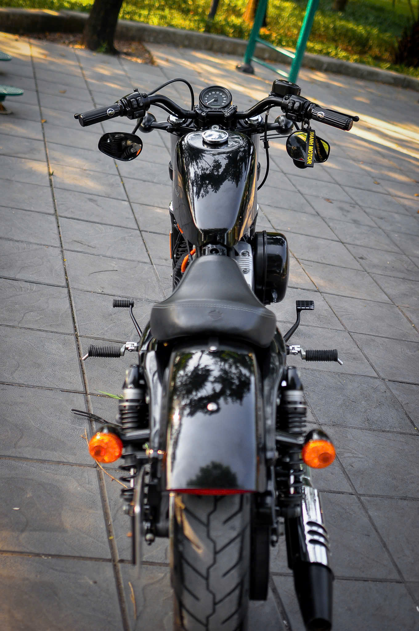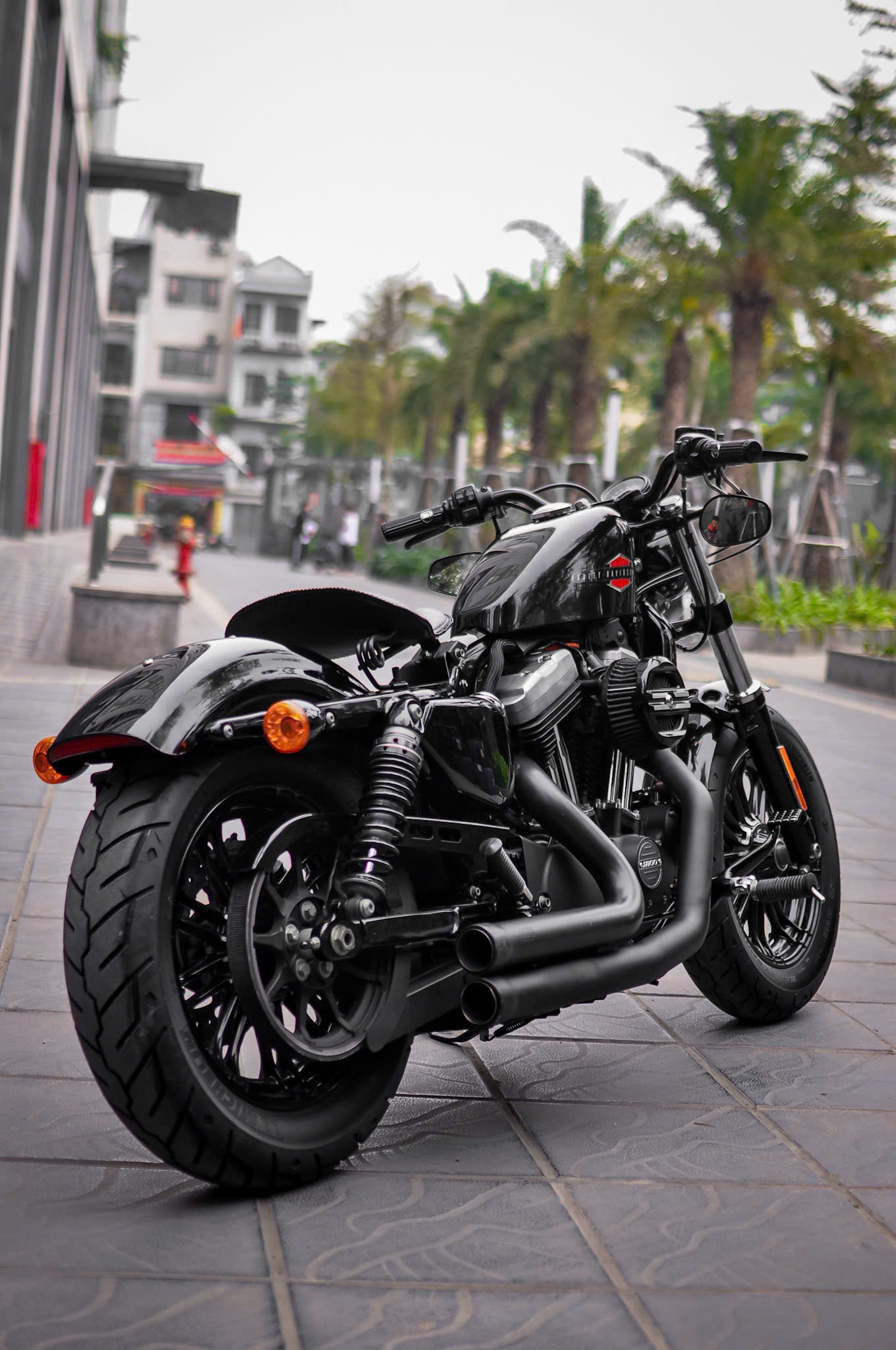 Chiếc Harley Davidson Forty Eight nổi bật với thiết kế bình xăng hình lê trứ danh cùng logo Harley-Davidson đặc trưng. Yên xe thấp giúp người lái dễ dàng kiểm soát xe trong mọi tình huống. Hệ thống treo trước với phuộc đơn giảm xóc nhún và hành trình ngắn, tạo cảm giác lái chắc chắn và linh hoạt.