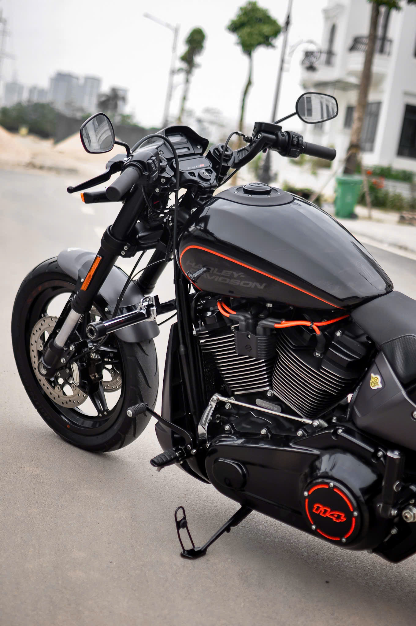 Với thiết kế đầy mạnh mẽ và góc cạnh, FXDR 114 có thân xe được chế tạo từ vật liệu hợp kim nhôm cao cấp, giúp xe nhẹ hơn nhưng vẫn đảm bảo độ bền bỉ cần thiết. Phần đầu xe tiêu biểu với kiểu dáng thể thao, được trang bị đèn pha LED hiện đại mang tới ánh sáng tốt hơn trong điều kiện thiếu sáng. Yên xe thiết kế theo phong cách solo cổ điển, không chỉ tôn vinh vẻ đẹp thể thao mà còn mang lại cảm giác ngồi thoải mái cho người lái.