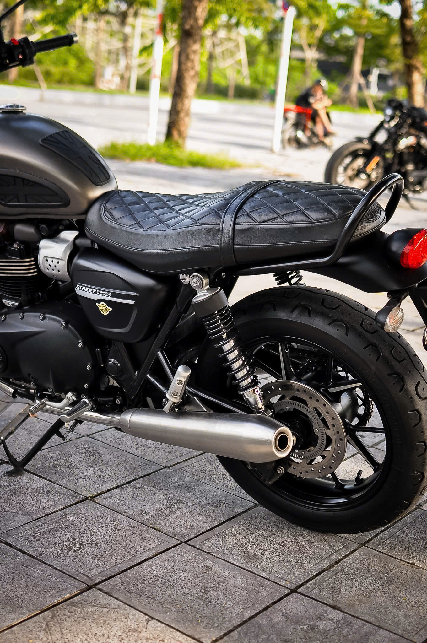Để đảm bảo an toàn, Street Twin 900 được trang bị hệ thống chống bó cứng phanh ABS tiêu chuẩn, giúp ngăn chặn hiện tượng bánh xe bị khóa khi phanh gấp. Thêm vào đó, hệ thống kiểm soát lực kéo (Traction Control) giúp chiếc xe giữ vững sự ổn định dù điều kiện đường trơn trượt.
