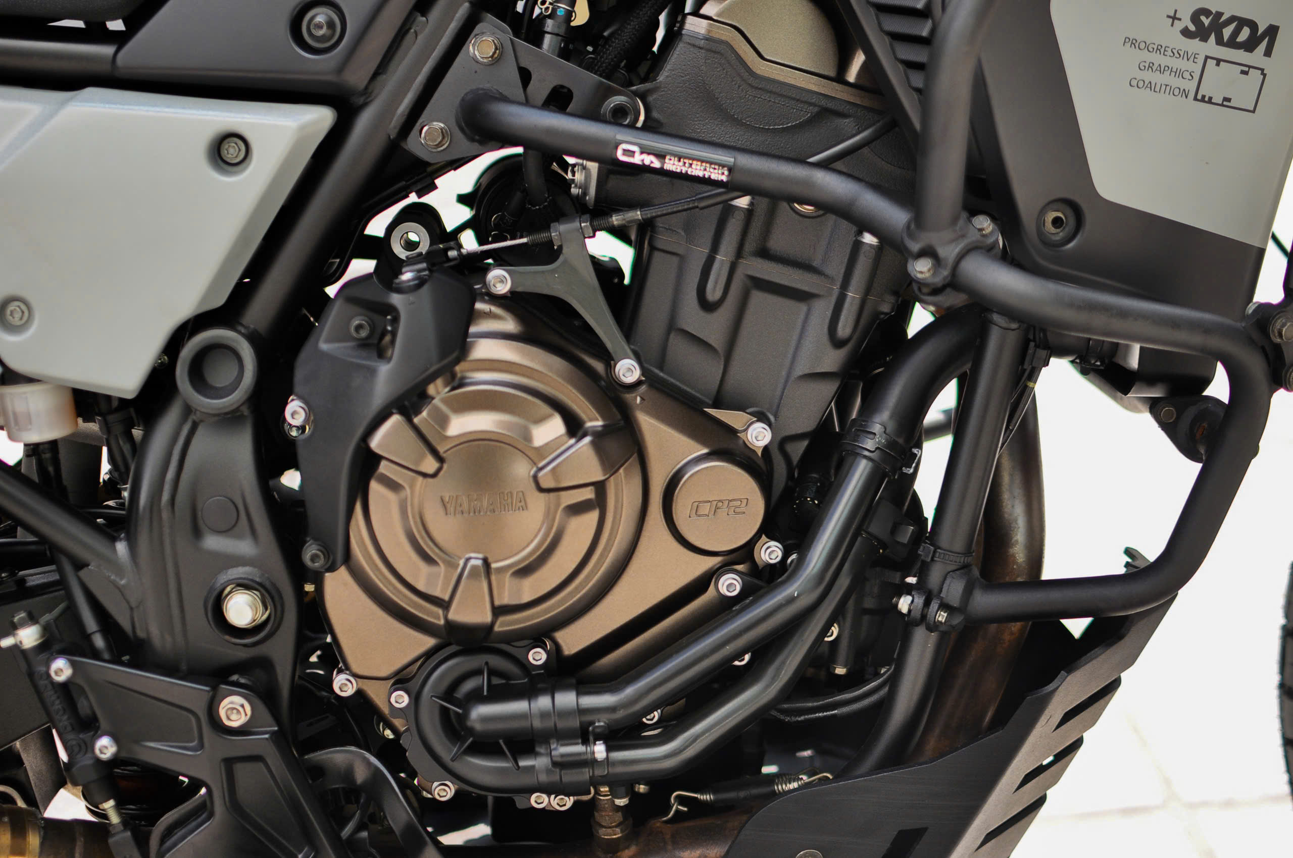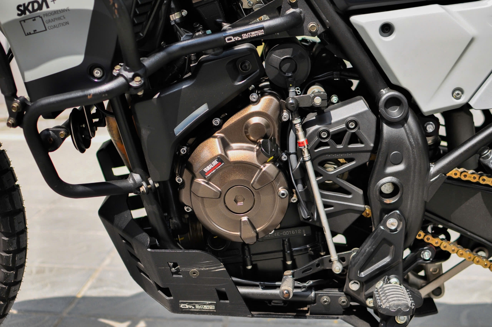 Là trái tim của chiếc xe, động cơ CP2 dung tích 689cc của Yamaha Tenere 700 sinh ra 72 mã lực và mô-men xoắn 68 Nm. Động cơ này, đã được kiểm chứng qua nhiều mẫu xe khác của Yamaha, không chỉ cung cấp sức mạnh vượt trội mà còn rất đ reliable. Cùng với hộp số 6 cấp và hệ thống ly hợp chống trượt, chiếc xe này mang lại khả năng kiểm soát xuất sắc và phản hồi linh hoạt trên mọi loại địa hình.
